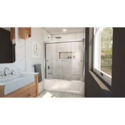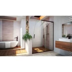 DreamLine Crest 76-5/8″ High x 60″ Wide Sliding Frameless Shower Door with Smoked Tempered Glass