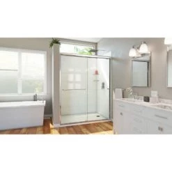 - Double sliding bypass configuration allows entry to the shower from left or right side, reversible for a right or left installation