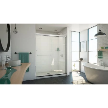 - Double sliding bypass configuration allows entry to the shower from left or right side, reversible for a right or left installation